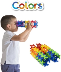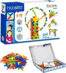 Stavebnica Incastro Colors maxi prináša 100 pevných plastových dielikov v farbách červená, žltá, zelená, modrá a oranžová. Vďaka šikovne navrhnutým konektorom ľahko postavíte plošné mozaiky aj priestorové stavby – od veží, mostov a domov až po vozidlá, roboty alebo dekorácie do izby. Dieliky sa spájajú iste a konštrukcie držia tvar, čo uľahčuje hranie aj prenášanie.