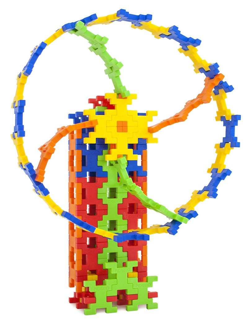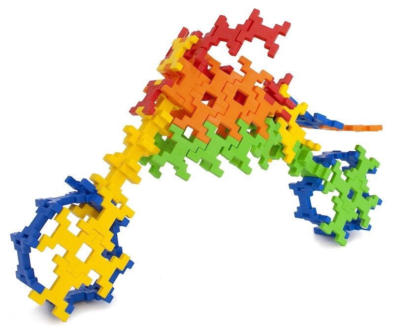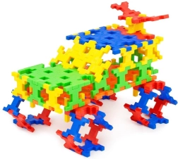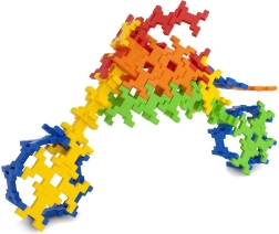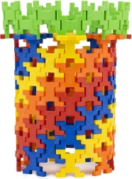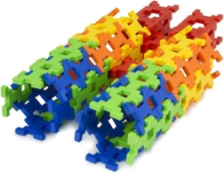 Prepojiteľný tvar dielikov umožňuje tvoriť mozaiky, domy, veže aj pohyblivé nápady – hranice určuje len fantázia.