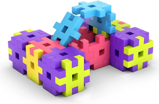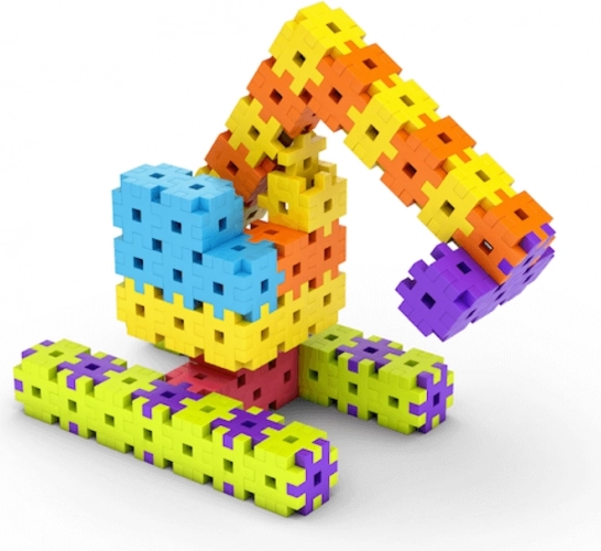 Vďaka ergonomickému tvaru a príjemnému povrchu si deti prirodzene trénujú správny úchop, koordináciu ruky a oka a zručnosti potrebné na písanie či prácu s nožnicami. Súprava obsahuje 50 dielikov a obrázkovú knižku s nápadmi. Pre ešte stabilnejšie stavby možno doplniť o základňu.