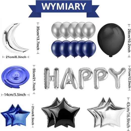 Sada narodeninových balónikov – tmavomodrá a čierna
