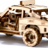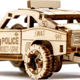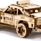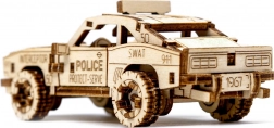 Zostavenie je bez lepidla a dieliky do seba presne zapadajú. Výsledkom je odolná miniatúra policajného auta, ktorá sa skvele vyníma na poličke aj pracovnom stole. Značka WOODEN CITY navyše dbá na ekológiu – produkt je balený bez plastov.