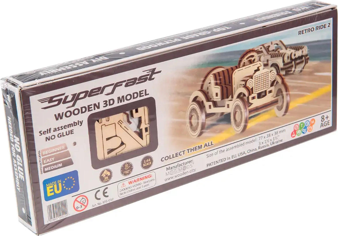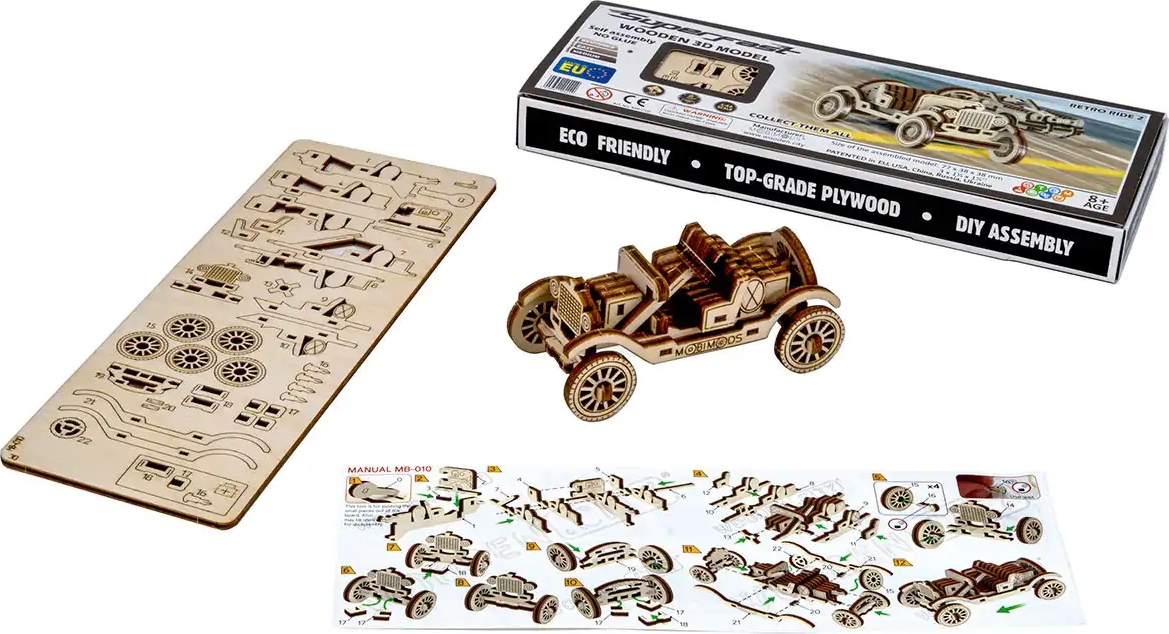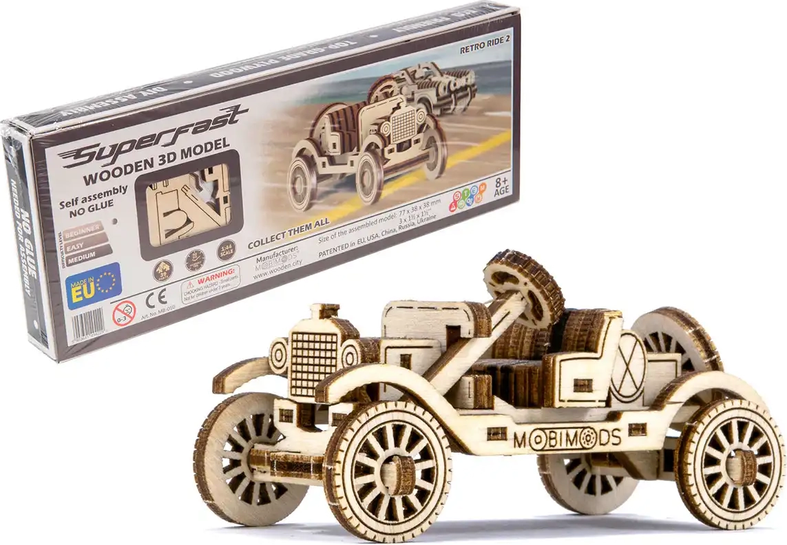 Model Retro Ride 2 sa ľahko zostavuje, takže je ideálny pre začiatočníkov – skvelý štart nového koníčka – aj pre pokročilých v skladaní drevených modelov.