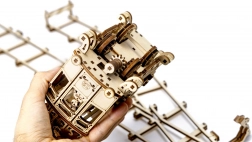 Táto precízne vyrezaná električka z brezovej preglejky prináša autentický zážitok z mechaniky – od ozubených koliesok a prevodov až po gumičkový motor. Po zostavení električka vyrazí na dodaných koľajach a poteší vás plynulým chodom aj elegantným dizajnom.