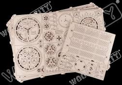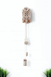 Model sa skladá z prírodného materiálu – kvalitnej brezovej preglejky. Hlavnou výhodou je skladanie bez použitia lepidla alebo náradia. Hodiny sú funkčné po natiahnutí a poskytujú príjemný zvuk tikania až 12 hodín.