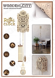 Drevené 3D puzzle Kráľovské hodiny od WOODEN CITY predstavujú mimoriadne krásny a unikátny model. Zložitý kyvadlový mechanizmus a detailné rezby dodávajú hodinám ušľachtilé kúzlo a zaručujú funkčnosť aj estetiku.