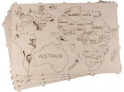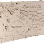 Mapa je vyrezaná z brezovej preglejky, ktorá dodáva interiéru prírodný a elegantný vzhľad.