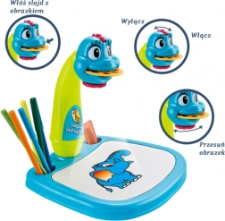 Roztomilý kresliaci výučbový projektor v tvare modrého dinosaura je ideálnou voľbou pre všetky malé deti, ktoré rady kreslia. Tento multifunkčný projektor má množstvo zaujímavých návrhov šablón na kreslenie. Výrobok uľahčuje učenie sa kreslenia, obťahovanie čiar a vytváranie nových tvarov, dieťa sa taktiež formou hry učí rozpoznávať farby.