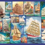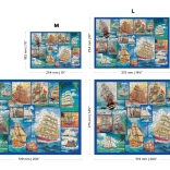 Možnosť zloženia puzzle buď podľa obrázku alebo podľa tvaru, s motívom plachetníc na jednej strane a opakujúcim vzorom na druhej.