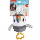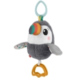Roztomilý tukan od Fisher‑Price je mäkkučká závesná hračka na kočík, autosedačku aj postieľku. Ponúka jemné hrkanie, šuchotavé krídelká, farebný zobáčik a hryzacie krúžky na úľavu pri prerezávaní zúbkov. Vďaka univerzálnemu klipu je vždy po ruke a podporuje zmyslový rozvoj aj jemnú motoriku bábätka od narodenia.