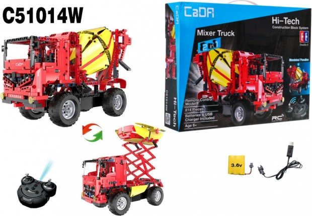 Postavte a ovládajte vlastné stavebné vozidlo so stavebnicou CaDA 2v1 s 814 dielmi. Diaľkové ovládanie na 2,4 GHz, otáčavá miešačka, zdvihacia kabína a mäkké gumové pneumatiky ponúknu realistickú jazdu aj kreatívne stavenie. Z jednej sady zložíte miešačku betónu alebo nákladné vozidlo s nožnicovým zdvihákom.