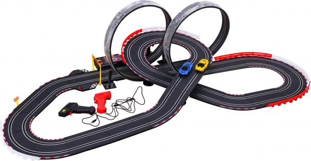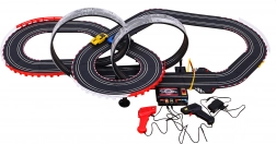 Táto sada zahŕňa dva ručné ovládače na jednoduché riadenie autíčok na dráhe a ponúka dynamické pretekárske zážitky.
