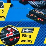 Dráha disponuje dvoma rýchlostnými režimami – rýchlym a pomalým – a tiež ukazovateľom počtu prejdených kôl. Tento interaktívny set zahŕňa dva ručné ovládače, ktoré deti ľahko používajú na ovládanie autíčok po dráhe.