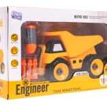 Tento plastový stavebný vyklápač so skrutkovačom je ideálny pre deti, ktoré milujú tvorenie a techniku. Vďaka jednoduchému systému skrutiek si dieťa precvičí koordináciu oko–ruka, trpezlivosť a pochopí základné princípy montáže a demontáže. Zdvihacia korba dodáva hre realistický rozmer – nakladaj, prevážaj a vykladaj.