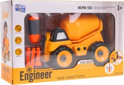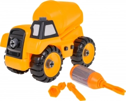 Zábavná stavebná miešačka na skladanie pre malých konštruktérov od 3 rokov rozvíja jemnú motoriku, logické myslenie a kreativitu. Vďaka pevnému plastu možno vozidlo opakovane rozoberať a skladať, bubon je zdvíhací, vyklápací a otočný. Súčasťou je skrutkovač s 3 vymeniteľnými bitmi.