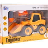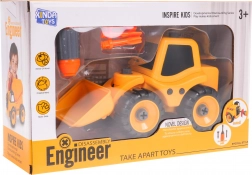 Tento stavebný buldozér zo série skrutkovacích vozidiel je ideálnou hračkou pre malých inžinierov. Vďaka pevnému plastu a jednoduchému skrutkovaciemu systému možno model bezpečne rozoberať a znova skladať bez obáv z poškodenia dielov. Pohyblivé rameno a predná lyžica podporujú realistickú stavebnú hru.