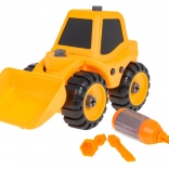 Zábavný skrutkovací buldozér pre malých staviteľov od 3 rokov rozvíja kreativitu aj jemnú motoriku. Deti môžu vozidlo opakovane rozobrať a zložiť, využiť odolné plastové diely, výmenné bity a užiť si pohyblivé rameno s lyžicou pre realistickejšiu hru.