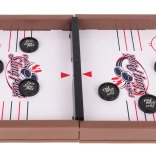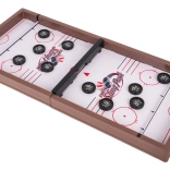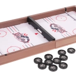 Rýchla a návyková stolová hra pre dvoch hráčov, v ktorej pomocou gumičiek vystreľujete puky cez stredový otvor na súperovu stranu. Ideálna pre rodiny aj priateľov – trénuje postreh, rýchlosť a koordináciu. Kompaktné rozmery, pevná drevená základňa a jednoduché pravidlá pre zábavu už od 3 rokov.