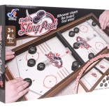 Objavte napínavú akciu hry Sling Puck: dvaja hráči stoja oproti sebe a snažia sa čo najrýchlejšie vystreliť všetky svoje puky cez úzky otvor v stredovej priečke na súperovu stranu. Hra je intuitívna, rýchla a perfektná na krátke zápasy aj dlhšie turnaje.
