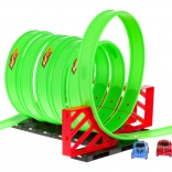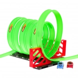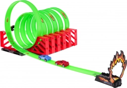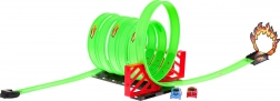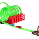 Táto farebná pretekárska dráha s celkovou dĺžkou až 185 cm prináša poriadnu porciu adrenalínu. Autíčko vyrazí po rovinke, zvládne 6 plynulých slučiek a napokon preletí „ohnivým“ kruhom. Vďaka pohonu Pull Back nepotrebujete batérie – stačí autíčko jemne natiahnuť dozadu a pustiť.