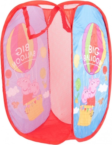 Nudné spôsoby usporiadania detskej izby sú minulosťou – náš červený organizačný kôš s potlačou Prasiatka Peppy vnesie do detskej izby farby.