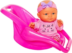 Ružové plastové nosidlo/kolíska s integrovanou rúčkou na bezpečné prenášanie bábiky doma aj vonku. Ideálne na realistickú hru na opatrovanie.