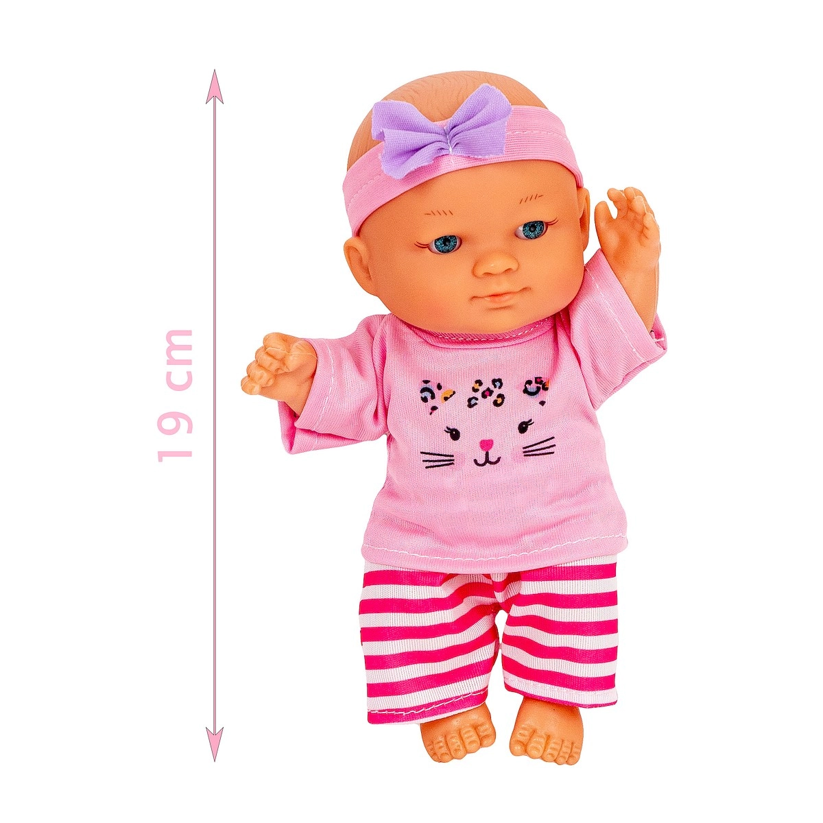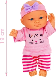 Bábika Julka prichádza v sade s ľahkým ružovým nosidlom/kolískou a priehľadnou vaničkou na kúpeľné rituály. Deti si zamilujú jej milý vzhľad, rozkošný ružový outfit s potlačou mačičky a čelenkou. Vďaka premysleným detailom a príjemným materiálom sa Julka rýchlo stane najobľúbenejšou kamarátkou na mojkanie aj hranie.
