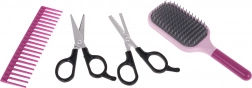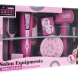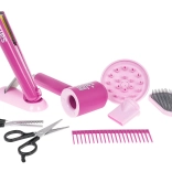 - fén, - vymeniteľná dýza k fénu s difuzérom, - vymeniteľná dýza k fénu s koncentračnou hlavicou, zaostrovacia dýza, - žehlička na vlasy, - nožnice, - efilačné nožnice, - hrebeň, - kefa na vlasy, - stojan na fén. |