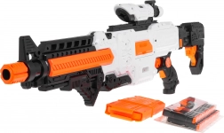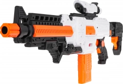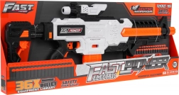Blaster Fast Pioneer v bielo‑oranžovo‑čiernom prevedení je ideálny na domáce aj vonkajšie bitky. Polosemi‑automatický mechanizmus s pružinou zabezpečuje rýchlu a plynulú streľbu po jednom výstrele. Stačí nabiť zásobník, podržať napájacie tlačidlo, zamieriť a stlačiť spúšť.