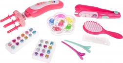 - strojček na zapletanie vlasov cca 25 cm x 5 cm x 5,5 cm, - strojček na nanášanie šperkov na vlasy cca 18 cm x 3,5 cm x 3,5 cm, - sponka do vlasov s rozmermi cca 9,5 cm x 1,5 cm x 2 cm, - diamanty cca 1 cm x 1 cm, - kefa na vlasy cca 14,5 cm x 6,5 cm x 2,5 cm, - krabička na gumičky do vlasov s rozmermi cca 11 cm x 11 cm x 2 cm, - krabica cca 46 cm x 31,7 cm x 6,5 cm. |