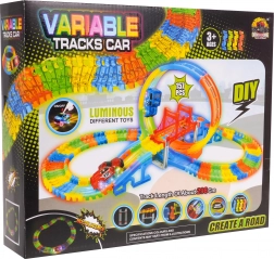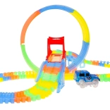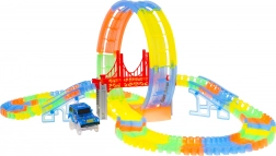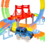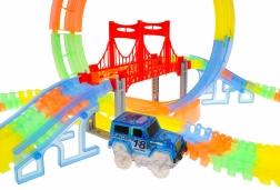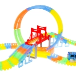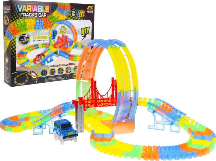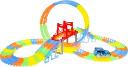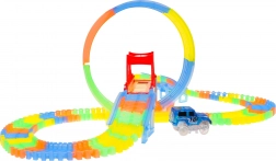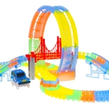 Svietiaca dráha v tme so slučkou a autíčkom v balení je vhodná pre deti od 3 rokov. Dráhy sú flexibilné, možno ich usporiadať v ľubovoľnej kombinácii, otáčať, zdvíhať, preskladať, a to počas jazdy autíčka. Dráhy sú navyše fluorescenčné, v tme svietia. Vozidlo, ktoré je súčasťou sady, má LED podsvietenie, jazda v tme vytvára úžasný efekt. Vozidlo je napájané 2 batériami AA 1,5 V (nie sú súčasťou balenia). Na naštartovanie auta stačí stlačiť tlačidlo na jeho streche. Tak, preteky sa začínajú. |
