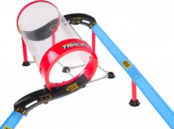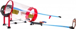 Transparentný tubus umožní sledovať jazdu v celej slučke. Autíčka prechádzajú vysokou rýchlosťou a zvládnu efektné premety bez potreby batérií.