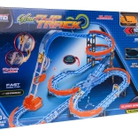 Vytvorte si vlastný extrémny závodný okruh. Modulárne diely umožnia postaviť viacúrovňovú trať so slučkami, rebríkom a dynamickými zjazdmi. Autíčko s LED podsvietením je napájané vstavaným akumulátorom 3,7 V a jednoducho sa dobíja pomocou USB kábla (súčasť balenia).