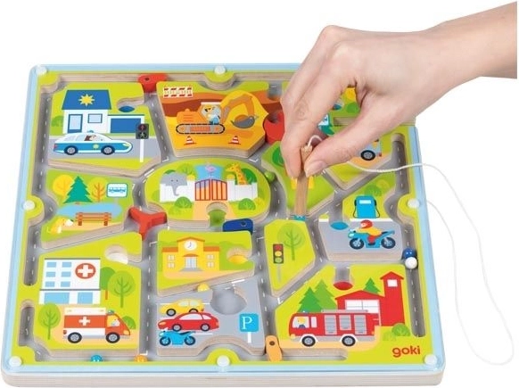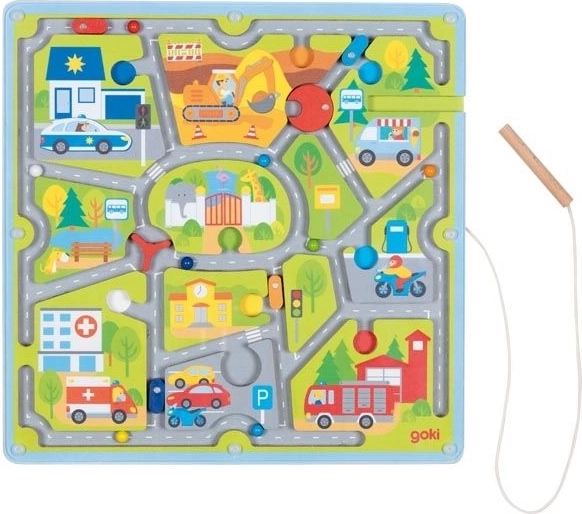 V pestrofarebnom meste GOKI je stále čo objavovať. Deti pomocou magnetického pera posúvajú guličky/autíčka po cestách, učia sa vnímať jednosmerky, prednosť na križovatkách aj zóny zákazu státia. Táto interaktívna hra prirodzene rozvíja jemnú motoriku, koordináciu oko–ruka a sústredenie.