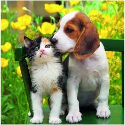 Každé puzzle prináša inú dvojicu mačiatka a šteniatka, ktorá poteší deti aj dospelých a ozdobí každú detskú poličku hotovým obrázkom.