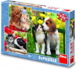 Roztomilá trojica skladačiek s motívmi mačiatok a šteniat prináša zábavu aj učenie v jednom. Každé puzzle má 55 dielikov a zaujme farebnými, detailnými zábermi zvieracích kamarátov. Deti si pri skladaní precvičia jemnú motoriku, priestorovú predstavivosť a schopnosť sústredenia. Puzzle sú vyrobené z odolnej lepenky a pochádzajú z SR.