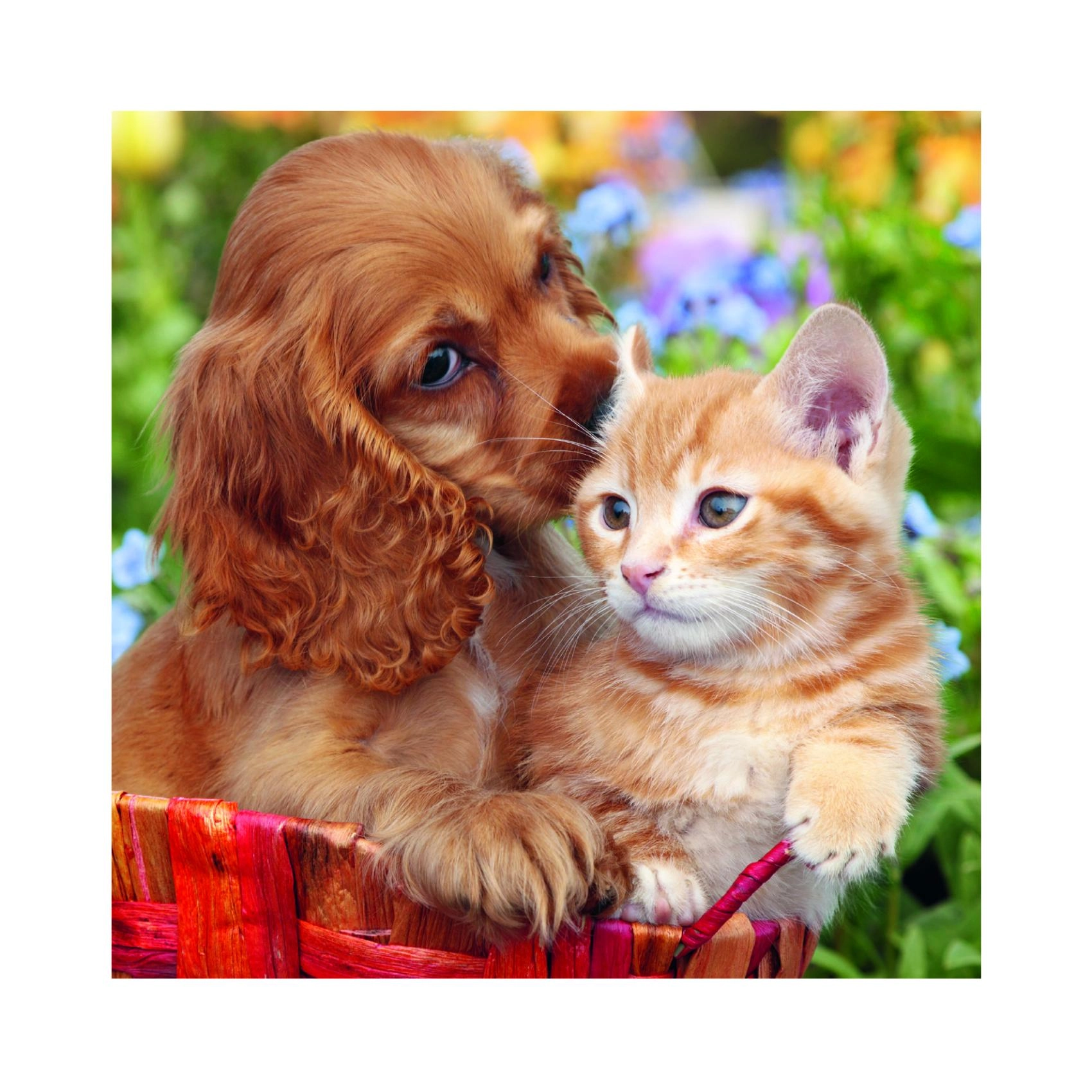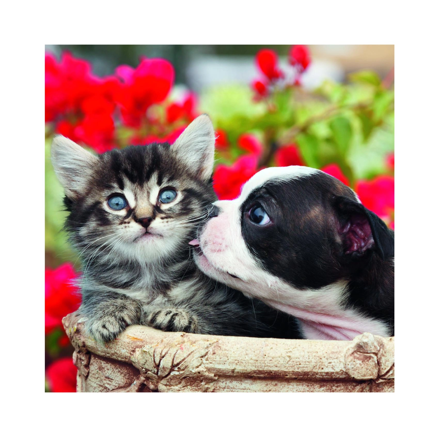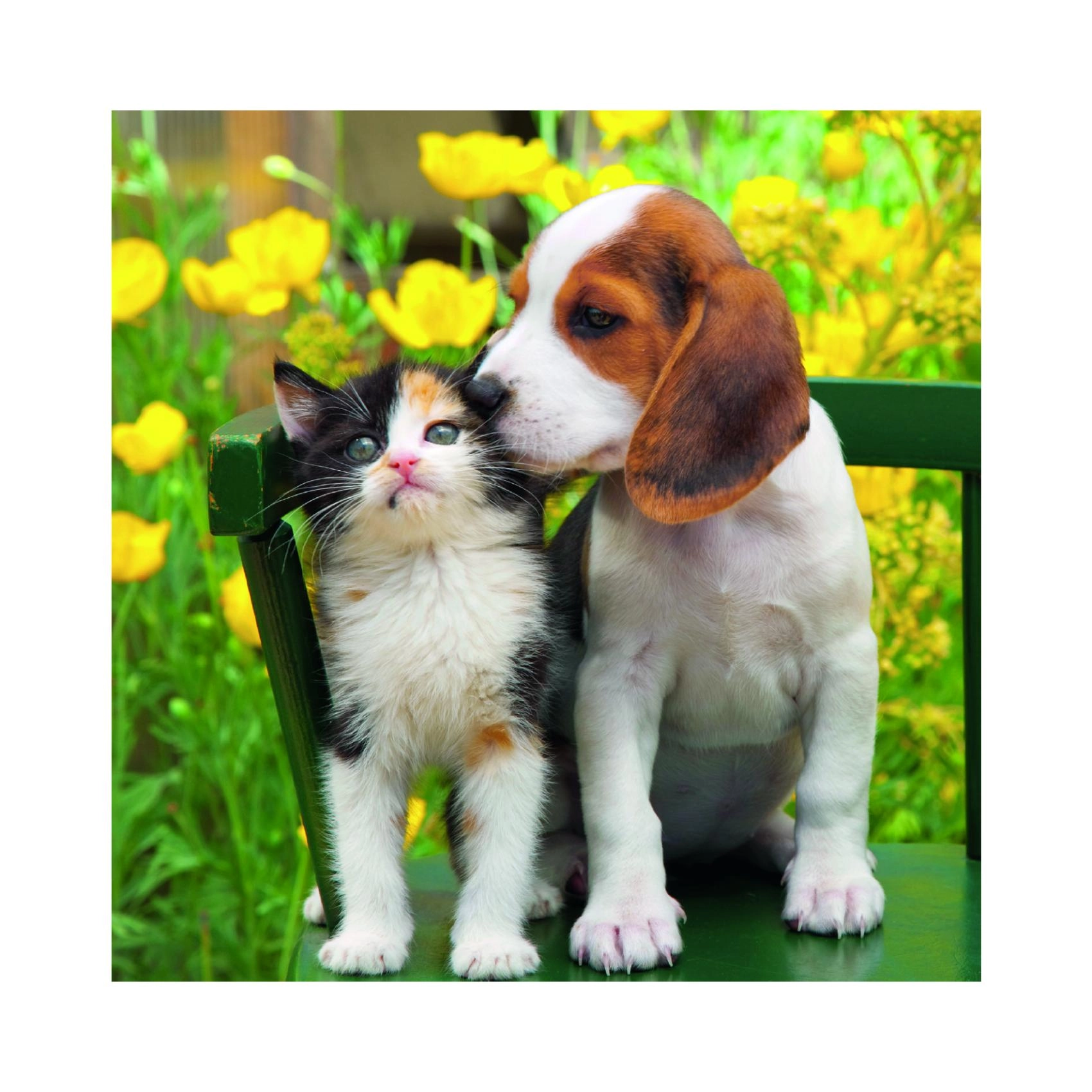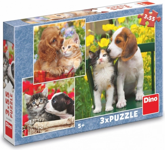 Tri rôzne puzzle s priateľskou dvojicou mačiatka a šteniatka na každom obrázku potešia malých milovníkov zvierat aj rodičov, ktorí hľadajú zmysluplnú zábavu. Každý z 55 dielikov presne zapadá a vďaka kvalitnej potlači vyniknú sýte farby aj jemné detaily.