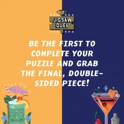 Puzzle Duel prináša svieži twist na klasické skladanie. Každý hráč si zvolí svoj motív – Piña Colada alebo Manhattan – a preteky sa môžu začať. Cieľom je byť rýchlejší, poskladať svoj obrázok a získať posledný spoločný dielik z dreveného stojana. Jednoduché pravidlá a chytľavý princíp zaručia napätie do poslednej chvíle.
