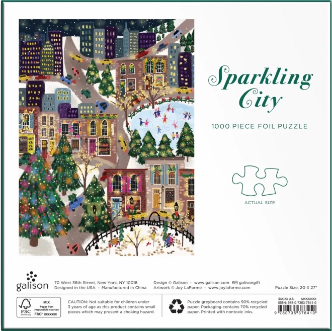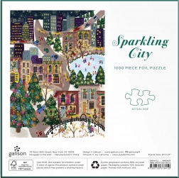 Užite si čarovnú zimnú atmosféru s 1000-dielnym puzzle Sparkling City, ktorého časti majú metalický lesk pre efekt zlata a striebra. Vďaka kvalitnému spracovaniu a precíznemu výrezu dielikov je skladanie plynulé a zábavné, priložená predloha uľahčí orientáciu. Po poskladaní získate dekoratívny obraz s rozmerom cca 51 × 69 cm.
