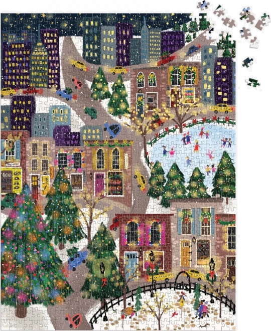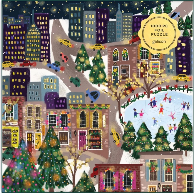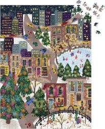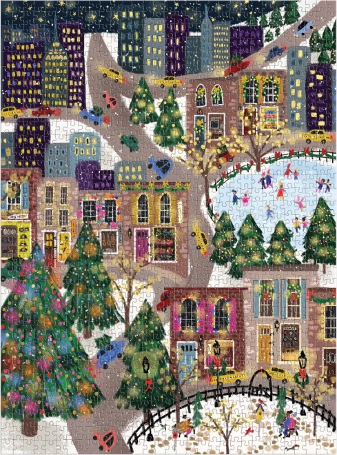Objavte sviatočnú mestskú scenériu plnú farieb, svetielok a korčuliarov. Puzzle s metalickými fóliami na vybraných častiach motívu vytvára jedinečný trblietavý efekt, ktorý vynikne pri rôznom dopade svetla. Ideálny darček pre milovníkov puzzle aj ako zimná dekorácia domova.