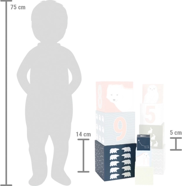 Predstavujeme jedinečné stohovacie kocky Arctic, ktoré kombinujú vzdelanie a hru. S desiatimi kockami vyrobenými z odolného kartónu s certifikáciou FSC ponúkajú deťom zábavnú príležitosť osvojiť si základy čísel, farieb a veľkostí. Každá kocka je zdobená motívom polárnych zvierat a číslom, čo podporuje nielen kreativitu, ale aj jemnú motoriku malých staviteľov.
