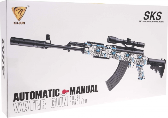 Táto realisticky spracovaná gélová pištoľ AKM kombinuje autentický vzhľad s bezpečnejšou zábavou vďaka hydrogelovým gulôčkam. Stačí ich zaliať vodou na 4–6 hodín, prebytočnú vodu zliať a môžete vyraziť do akcie. Vďaka automatickému a manuálnemu režimu si každý zvolí štýl streľby, zatiaľ čo optika so zväčšením pomôže presnejšie mieriť.