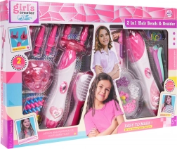 - stroj na zapletanie vlasov približne 26,5 cm x 7,5 cm x 7,5 cm, .- strojček na nanášanie korálikov na vlasy približne 26 cm x 5,5 cm x 5 cm, .- krabička na koráliky približne 11 cm x 11 cm x 2 cm, .- korálik približne 0,5 cm x 0,8 cm, .- kefa na vlasy približne 14,5 cm x 6 cm x 2,5 cm, .- vlasová pružina približne 4,5 cm x 1 cm, .- vlasová pruženka približne 9,5 cm x 1,3 cm x 2 cm, .- balenie približne 44,5 cm x 30,8 cm x 5 cm, . |