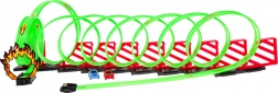 Postavte si vlastný pretekársky svet. Sada obsahuje 36 dielov na ľahké zostavenie dráhy s viacerými slučkami, rovinkami a skokom cez ohnivý kruh. Vďaka pohonu pull-back stačí autíčko natiahnuť dozadu a pustiť – vyrazí vysokou rýchlosťou, zvládne 360° loopingy a dynamické prejazdy.