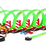 Viacnásobné slučky a plynulé oblúky preveria rýchlosť aj stabilitu autíčok. Každý prejazd je plný napätia a zábavy.