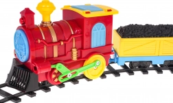 Táto farebná plastová vlaková súprava poteší každého malého rušňovodiča. Lokomotíva je vybavená blikajúcimi svetlami vpredu, hore aj po stranách kabíny a počas jazdy vydáva realistické zvuky. Zaujímavým prvkom je otváracia kabína, z ktorej sa pri jazde vysúva postavička robota.