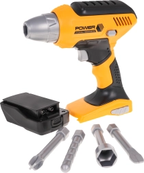 - Vymeniteľné koncovky pre vŕtačku a skrutkovač: vrták, plochá koncovka, krížová koncovka, koncovka s kľúčom