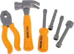 Fantastická zostava pre malých majstrov obsahujúca interaktívnu vŕtačku a praktickú tašku na náradie. Je vhodná pre deti od 3 rokov. Vŕtačka je nielen realistická na pohľad, ale aj plne funkčná. Obsahuje vymeniteľné bity, ktoré sa dajú ľubovoľne meniť. Vďaka dvom smerom otáčania je možné skrutky vkrútiť aj vykrútiť. Vŕtačka má zvukové a svetelné efekty a vyberateľnú batériu ako v náradí pre dospelých. Funguje na batérie 3 x AAA 1,5V, ktoré nie sú súčasťou balenia. Okrem vŕtačky obsahuje táto zostava aj ďalšie nástroje ako skrutkovač s vymeniteľnými koncovkami, uhlovú mierku, kľúče, skrutky a prvky na skrutkovanie. Po dokončení práce môžu deti všetky nástroje uložiť do praktickej tašky. Taška má hlavnú komoru uzatvárateľnú na suchý zips, malú prednú kapsičku a pútka na náradie. Je vybavená popruhom na rameno.