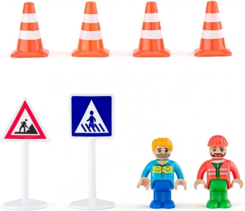 Sada obsahuje vozidlá, figúrky aj dopravné značenie, takže deti si okamžite vytvoria vlastné stavenisko a scenáre plné fantázie.
