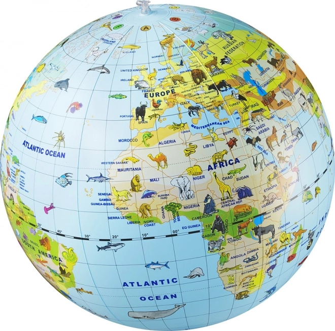 Objavujte svet zábavnou formou s nafukovacou loptou v tvare glóbusu s priemerom 50 cm. Deti si pri hre ľahko spoja kontinenty, oceány a ich typické zvieratá v prirodzenom prostredí. Ideálne na učenie geografie hrou doma aj v škole, ľahké a jednoducho prenosné.