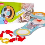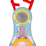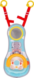 Rozmery sady sú približne 43 cm x 21 cm x 10 cm a ľahko sa upevňuje na opierku hlavy sedadla. Hračka je vhodná iba pre deti sediace v smere jazdy a nie je určená pre deti otočené proti smeru jazdy. Stimulácia zmyslov dieťaťa prebieha prostredníctvom zvukov a svetiel.